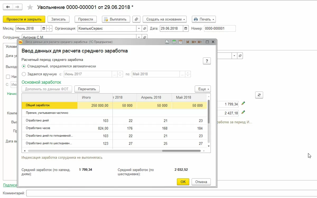 Если у пользователя возникнет потребность в корректировке суммы среднего заработка, он может нажать на кнопку с изображением карандаша и внести недостающие данные для расчета среднего заработка.