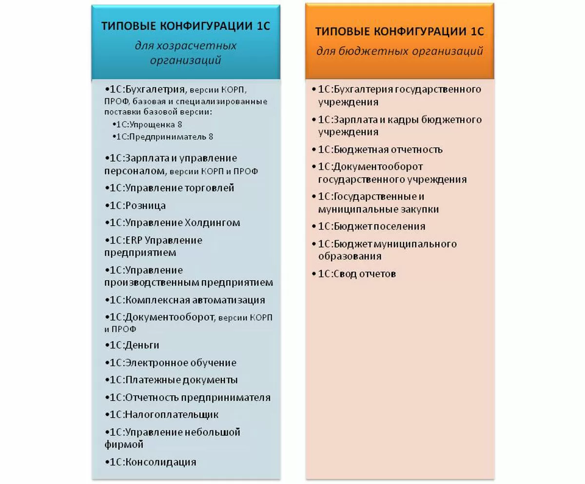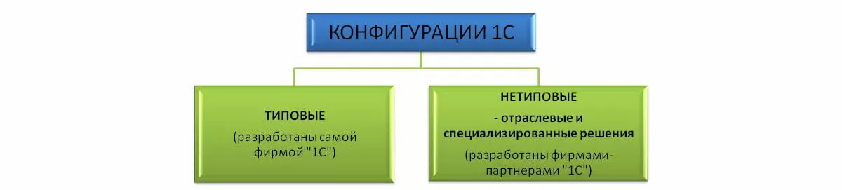 Таким образом, в зависимости от разработчика, конфигурации 1С бывают двух видов: типовые и нетиповые (также называются отраслевыми и специализированными решениями).