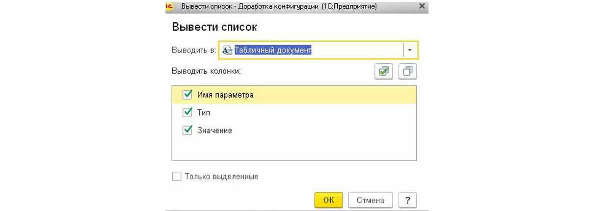 Сохранение данных результата запроса в файл распространенного формата позволяет решить частые задания без создания внешних отчетов. Намного быстрее запустить консоль запросов и написать только текст обращения к базе данных, чем оформлять форму отчета и писать процедуры вывода. Команда «Вывести список…» предложит вам несколько вариантов и позволит выгрузить лишь выделенные строки и определенные столбцы.