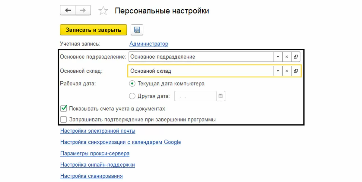 Некоторые настройки программы можно выполнить, установив значения по умолчанию в разделе «Главное» - «Персональные настройки».