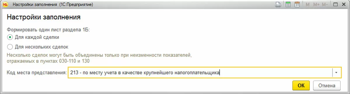 «Один лист 1Б для каждой сделки (или нескольких сделок)» отражает данные о товаре: страна производства, цены, точка продажи и прочие данные. Если имеются сделки с одними и теми же условиями, их можно объединить, выбрав второй пункт. Ниже указывается место предоставления декларации.