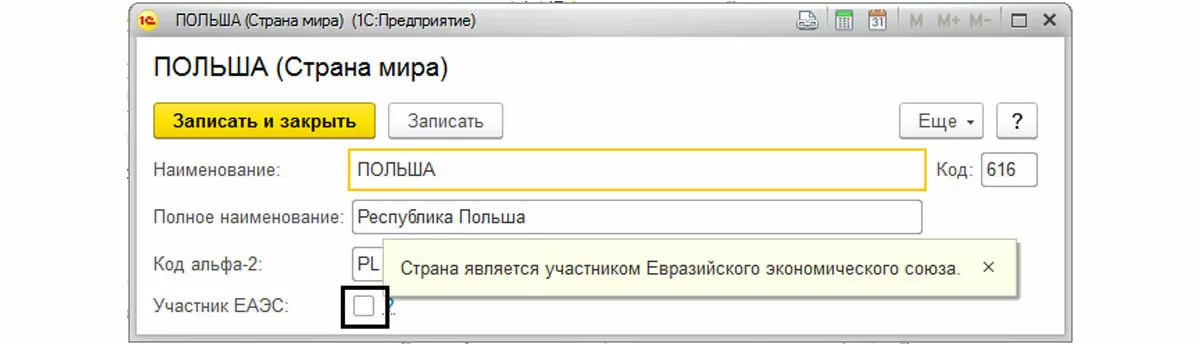 Далее отмечаем параметры, относящиеся к контрагенту. После заполнения нажимаем «Записать и закрыть».