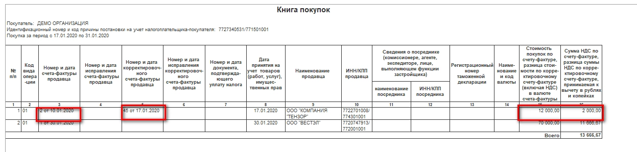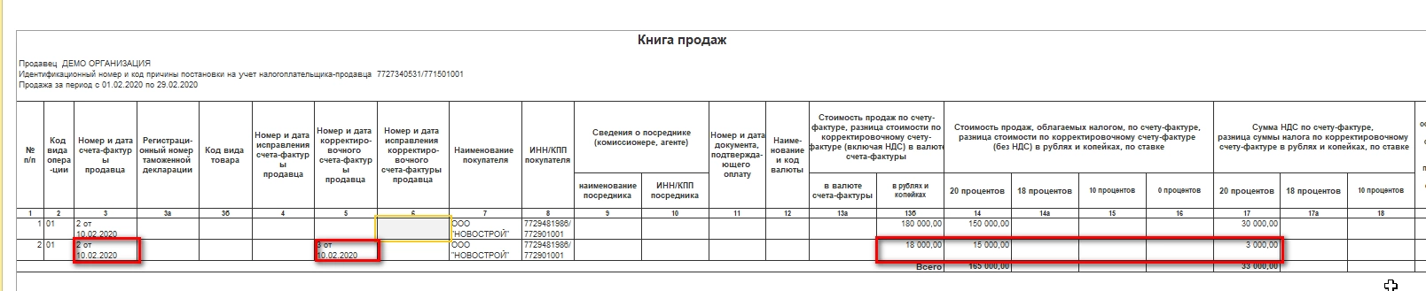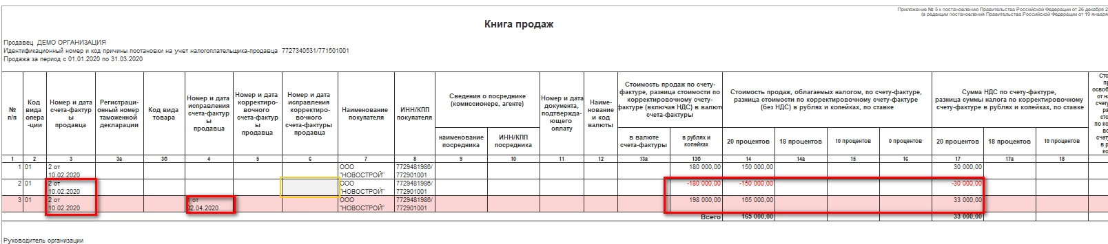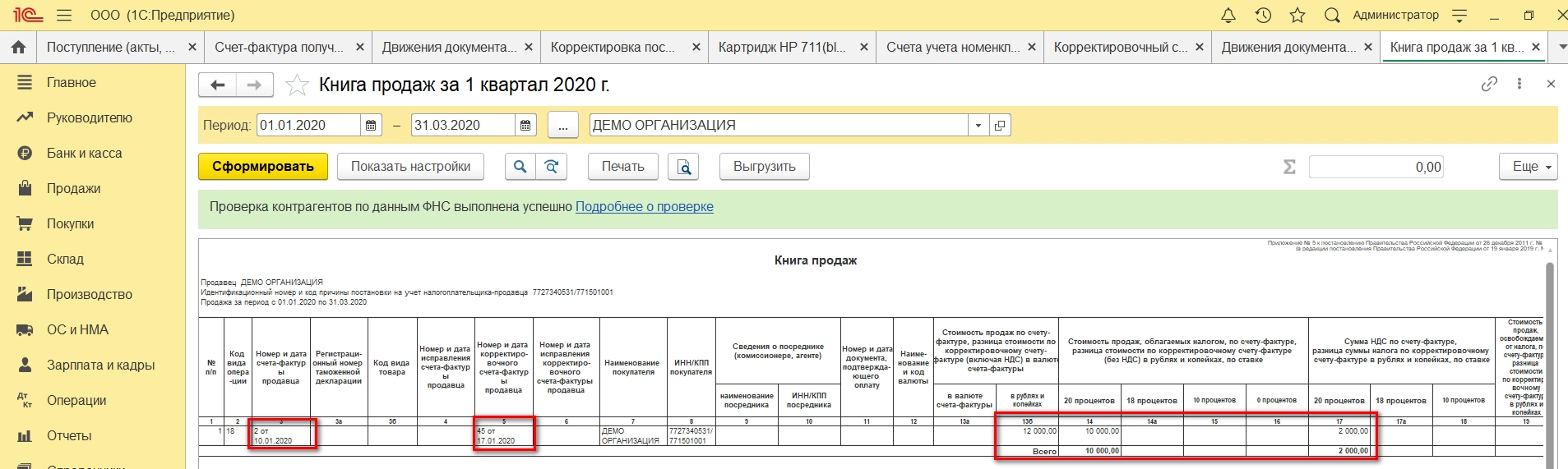 Далее формируем книгу продаж, корректировка успешно в ней отразилась.