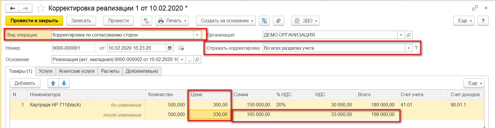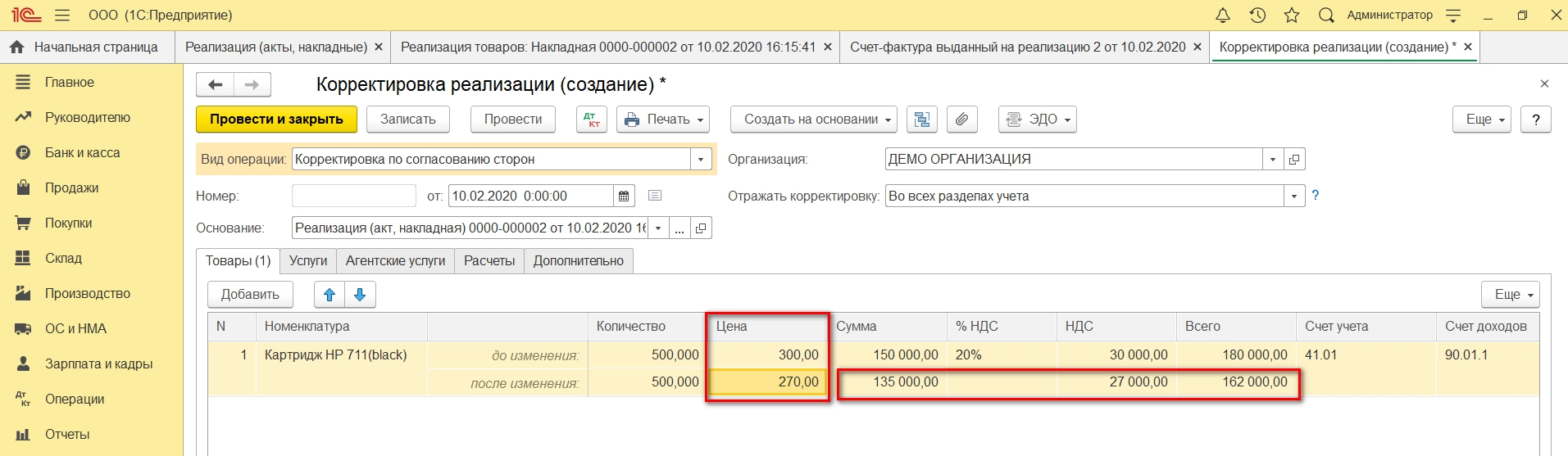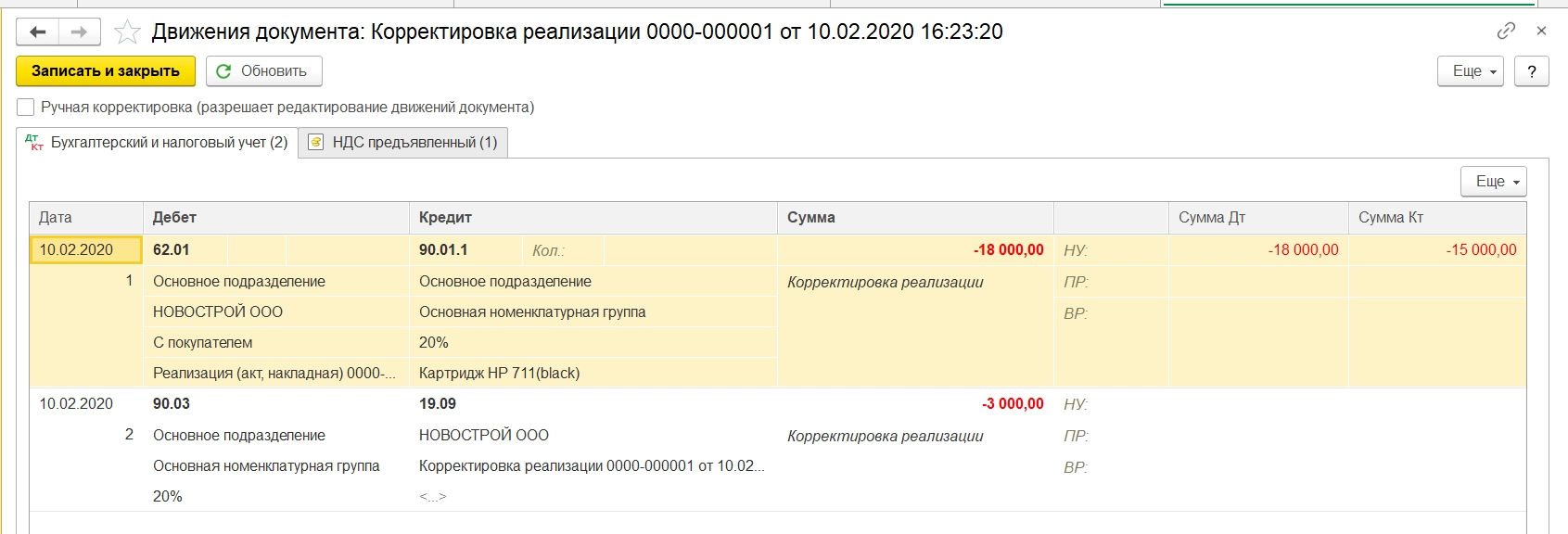 Корректировка возможна двух видов – увеличивающая или уменьшающая стоимость реализации. Бухгалтеру чаще приходится сталкиваться с ситуацией уменьшения стоимости, например, при применении ретроскидок.