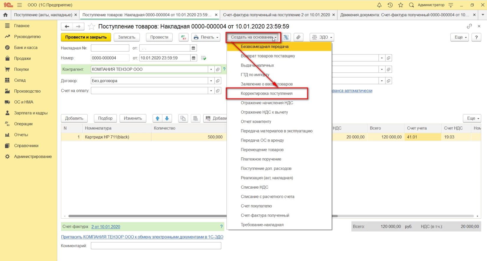 Сначала должен быть внесен первоначальный документ поставки (в нашем случае – товара) и данные первичной СФ. Порядок заполнения этих документов и проводки знакомы бухгалтерам, но если вопросы все-таки возникнут обращайтесь за помощью консультантов 1С, связавшись с нами любым удобным для вас способом. Мы с радостью вам поможем!.