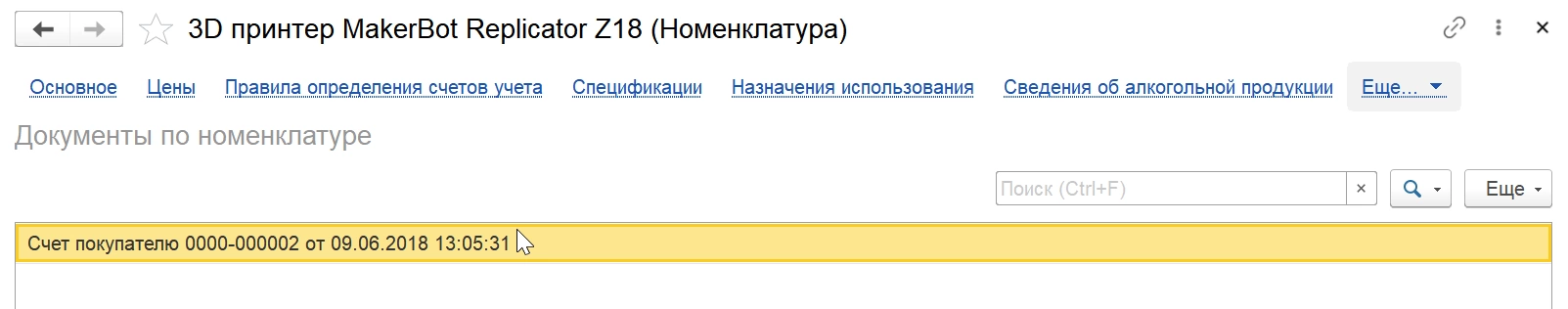 Нажимаем на эту ссылку и получаем список документов, где была задействована эта позиция.