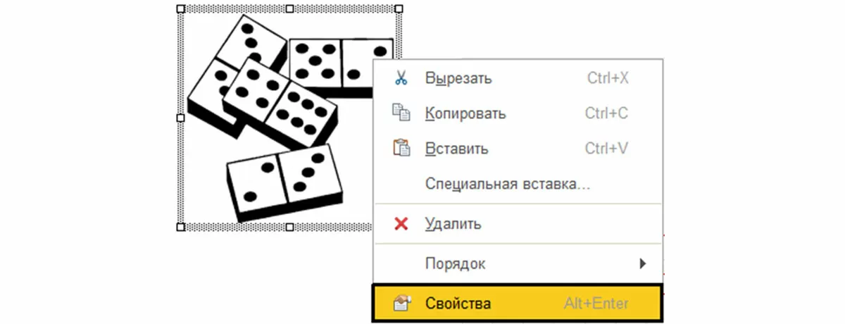 Наш логотип вставился в рамке. Нажмем правой кнопкой на картинке и выберем пункт меню «Свойства».