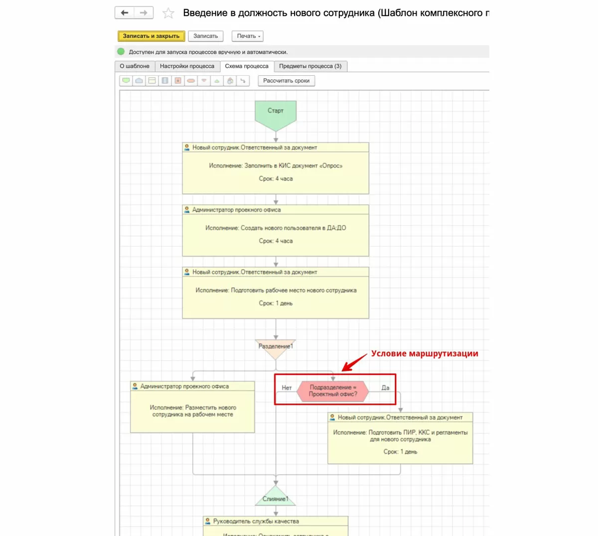 При встраивании условий маршрутизации в сложные процессы важно предусмотреть все варианты поведения системы – что будет происходить, когда условие будет выполняться и когда не будет.
