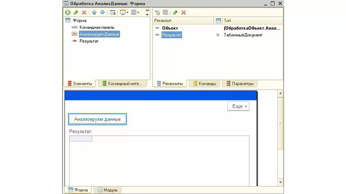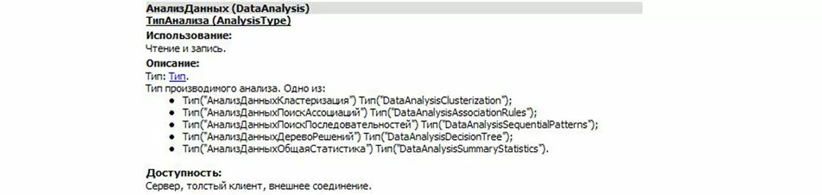 - РезультатАнализаДанных – имеет несколько видов в зависимости от выбранного типа анализа. Объект представляет собой результаты работы АнализаДанных;