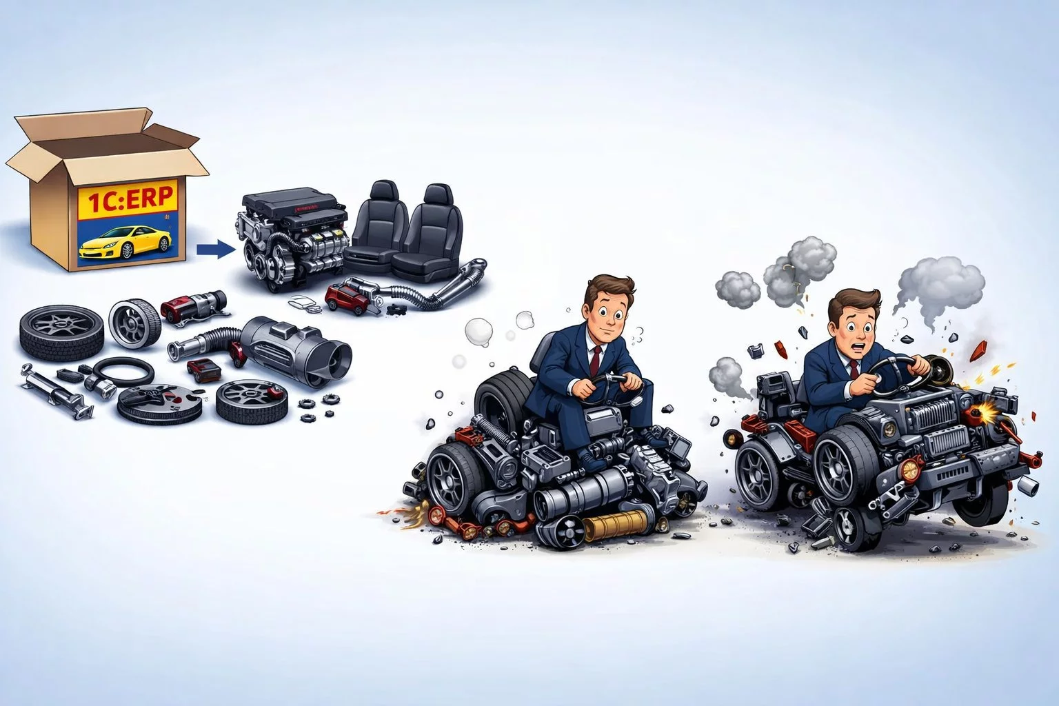 1С:ERP — это мощнейший конструктор. Но любой конструктор требует сборки по инструкции. Покупая «коробку», вы получаете не готовый автомобиль, а набор высококачественных запчастей. И если вы попытаетесь ехать на них, просто сложив в кучу, — вас ждет крах.