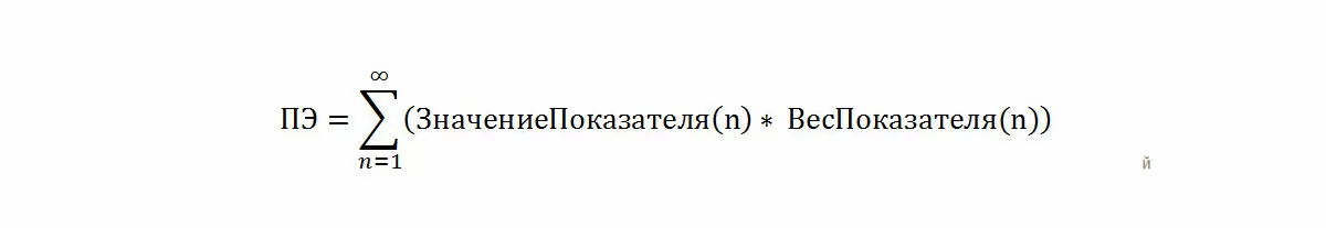 Для расчета ПЭ каждый показатель будет умножен на вклад (по Формуле 1).