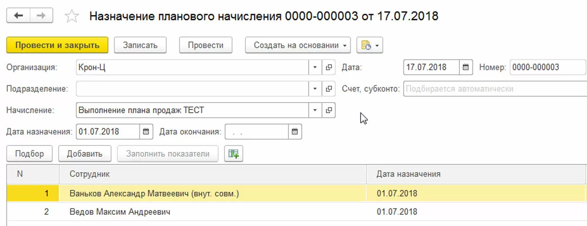 Мы назначили сотрудникам плановое начисление, для расчета которого используется показатель эффективности. В блоке мотивации HRM системы для управления персоналом ЗУП КОРП мы создали эти показатели и назначили их тому подразделению, где работали сотрудники.