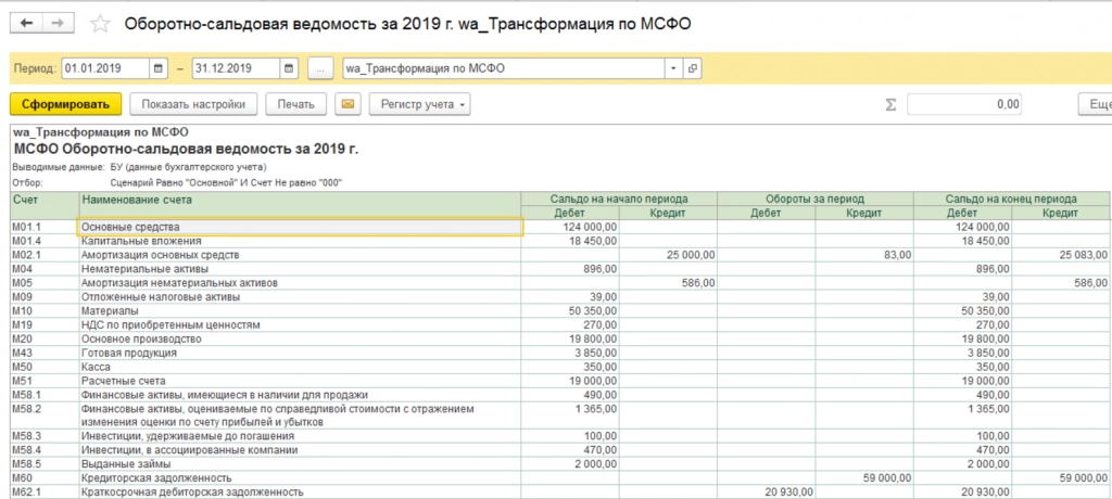 Основная цель трансформации – это подготовка скорректированной оборотно-сальдовой ведомости, на основе которой составляется отчетность по МСФО. Оборотно-сальдовую ведомость по МСФО формируют с использованием плана счетов, принятого компанией для целей составления отчетности по международным стандартам.
