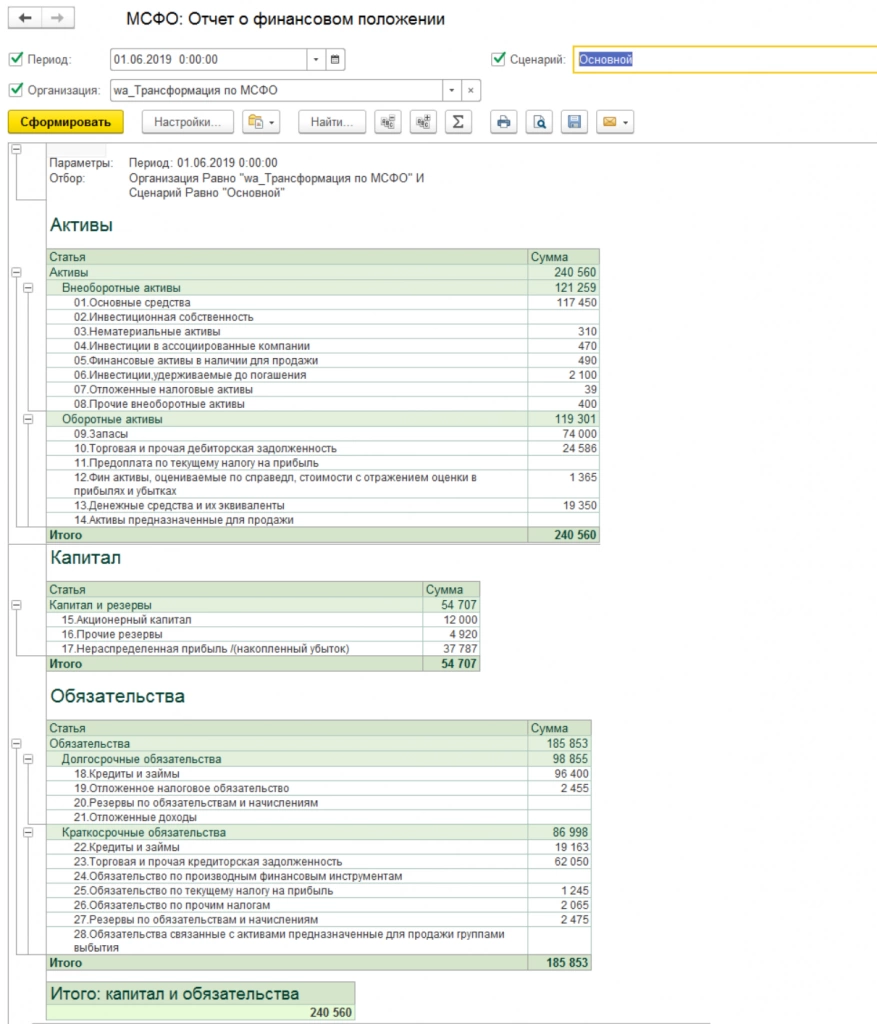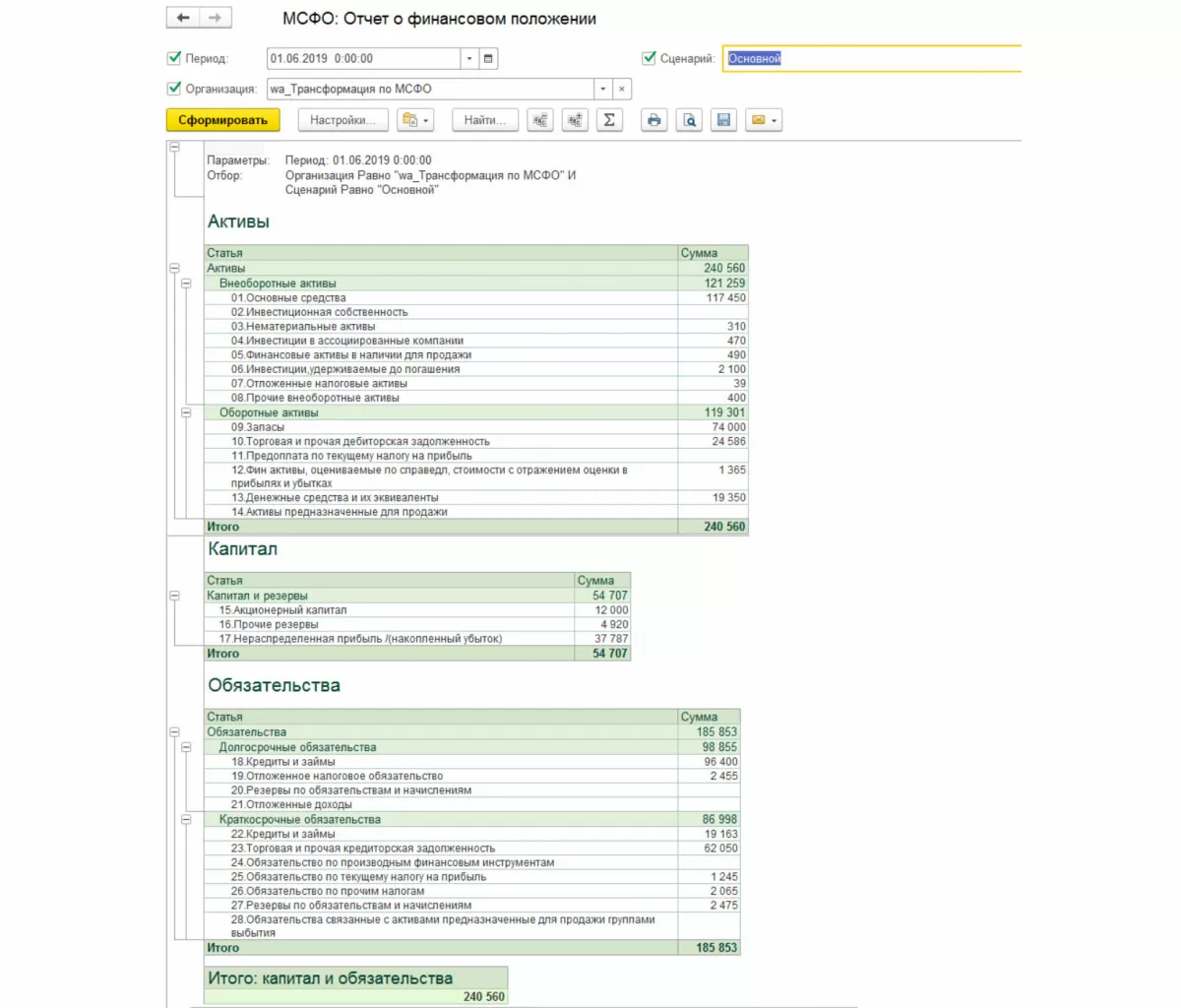 Таким образом, трансформация выполняется в соответствии с настроенными правилами выборки данных. Процесс трансформации, дальнейшее формирование и сравнение отчетности по МСФО можно выполнять параллельно, в разрезе разных сценариев МСФО.