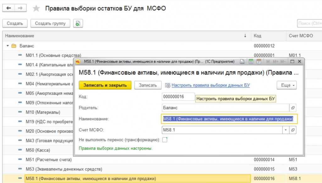 1.Трансформация остатков учета по счетам учета 1С Бухгалтерии в контур МСФО.
