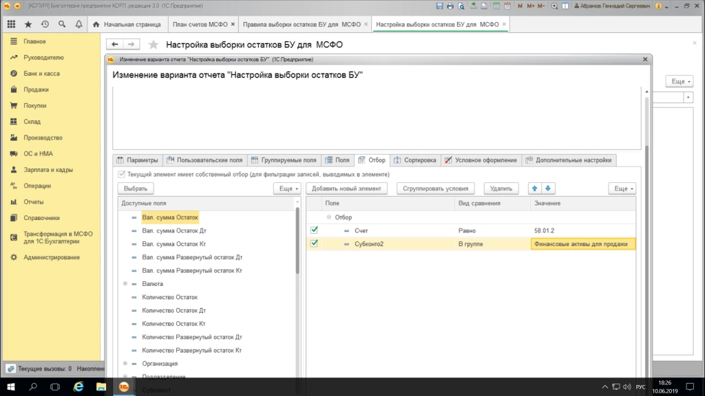 Также программа позволяет настроить при необходимости формулы для расчета сумм для переноса в МСФО.