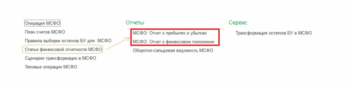 Перечень статей, порядок их вывода и заполнения программа позволяет настроить и адаптировать под требования конкретного внедрения. В состав поставки подсистемы «Трансформация в МСФО для «1С:Бухгалтерия» включены готовые настройки для отчетов: