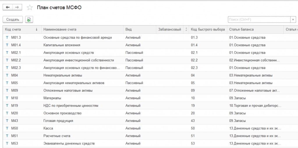 При этом состав статей и их заполнение настраиваются в программе в специальном справочнике «Статьи финансовой отчетности МСФО».