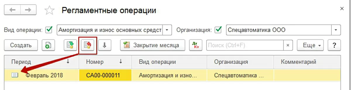 При необходимости пересчета в результате внесения изменений в первичные документы, можно отменить начисление амортизации в 1С, используя функцию «Отменить операцию».