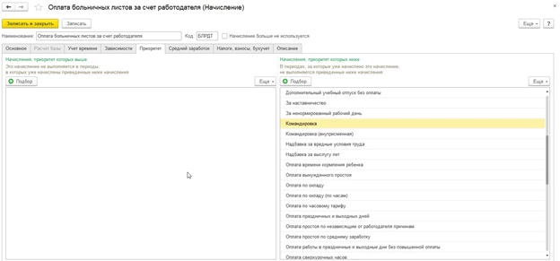 Представим, что работник находился в командировке и за ним сохранен средний заработок. Если, вернувшись из командировки, он предоставил листок нетрудоспособности, то при вводе в ЗУП листа период нахождения на больничном будет перерасчитан согласно настройкам видов начисления.