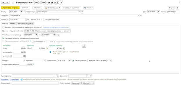- № листка (можно ввести руками с клавиатуры, загрузить из Фонда соцстрахования или из файла);
