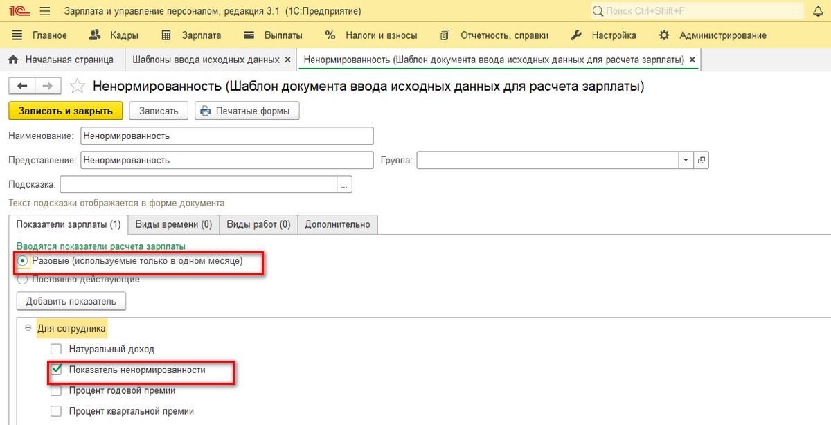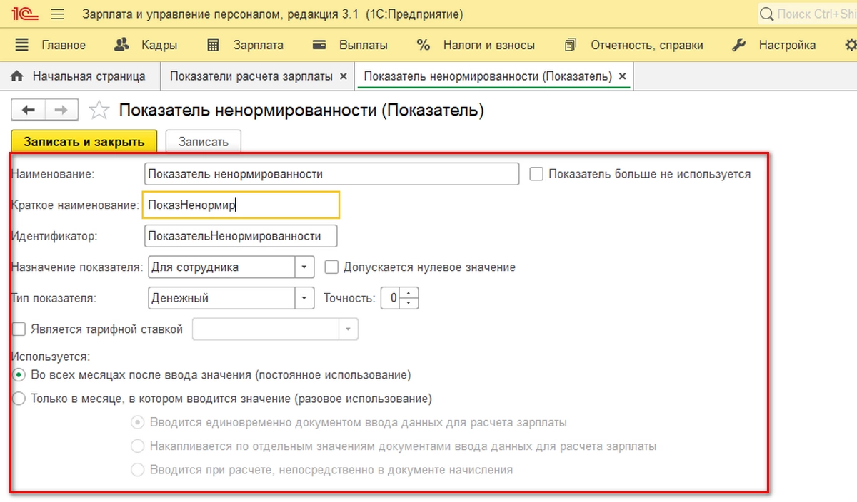 Также показатели можно создать в разделе «Настройка-Показатели расчета зарплаты», заполнив необходимые поля: