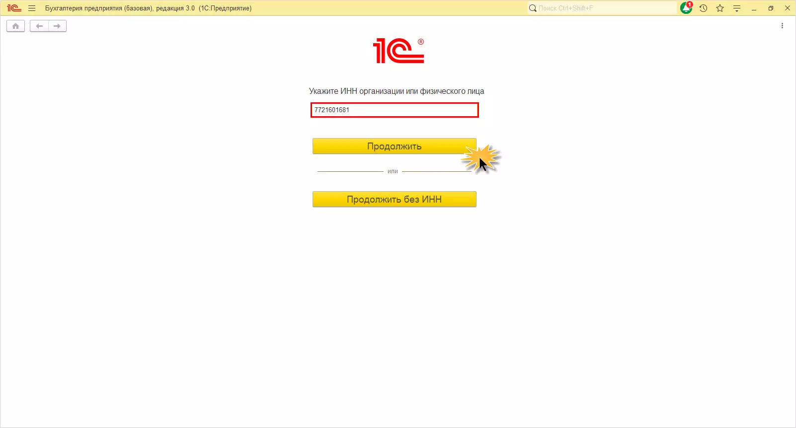 При указании ИНН система автоматически определит вид организации «Физическое» или «Юридическое лицо». Можно продолжить без указания ИНН, нажав одноименную кнопку.