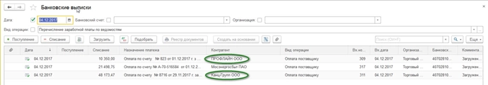Загруженные документы будут отображаться в журнале «Банковские выписки», проведенные будут отмечены зеленой галочкой.