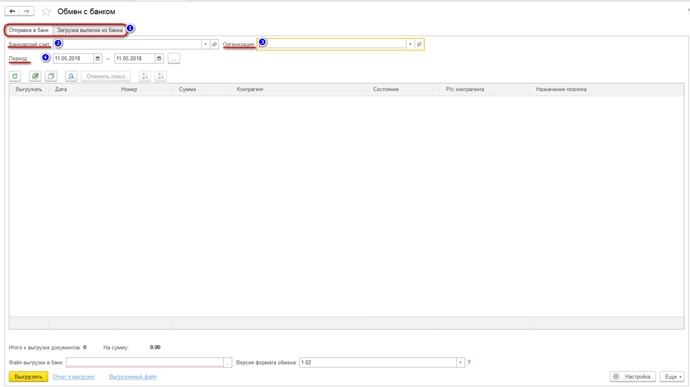 - В выгрузках указываем, какие документы войдут в файл и будут контролироваться при загрузке (корректность номера документа и безопасность обмена с банком).