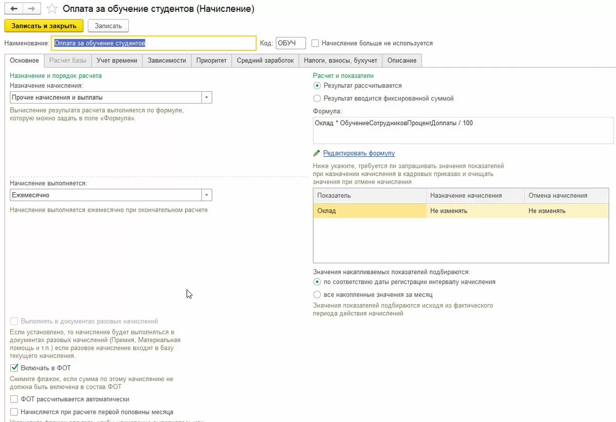 Создание «Вида начислений» с произвольной формулой в 1С ЗУП 3.1