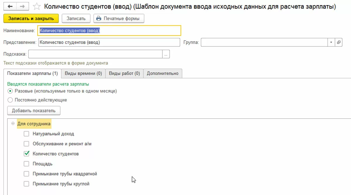 - Настройка нового постоянного показателя в 1С ЗУП 3.1