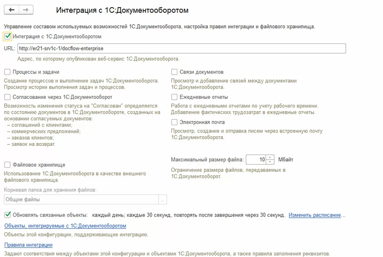 Настройка параметров интеграции