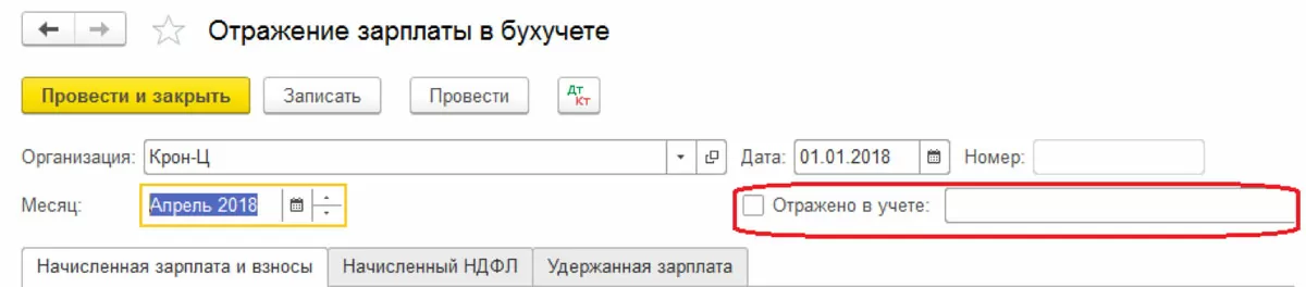 При указании данного признака на стороне БП сформируются проводки по документу. При обмене с ЗУП данный документ блокируется для изменений до тех пор, пока бухгалтер в своей программе не снимет указанный выше признак (рис. 2).