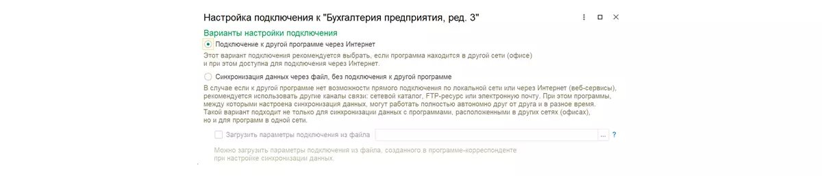 Первый вопрос, который задает система – Как будет происходить обмен? Через интернет или через файл?
