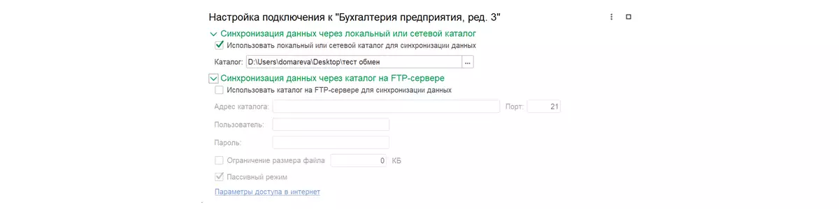 Для каждой версии обмена необходимо будет выбрать свой список настроек. Для обмена через файл достаточно адреса папки в компьютере или на сервере.