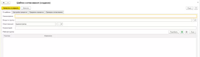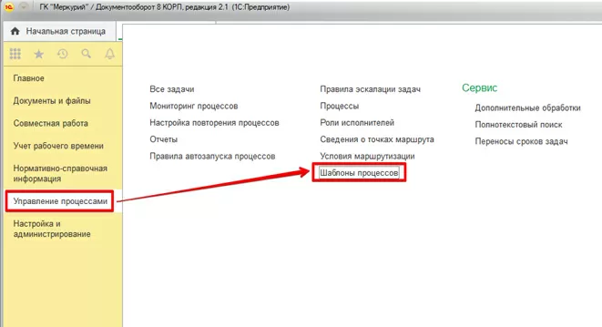 Обратите внимание, что обычным пользователям этот функционал недоступен, настраивать шаблоны процессов могут только пользователи со специальными полномочиями, дающими права на данную подсистему.