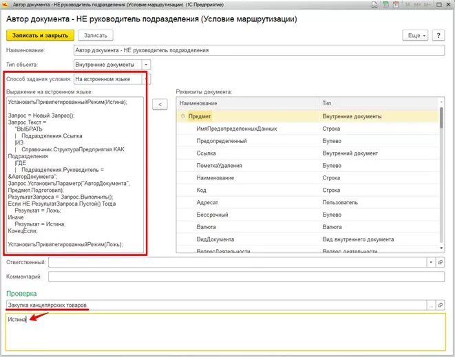 Настройка условий возможна по довольно сложным алгоритмам – с использованием практически всех реквизитов объектов системы или с использованием встроенного языка программирования системы.