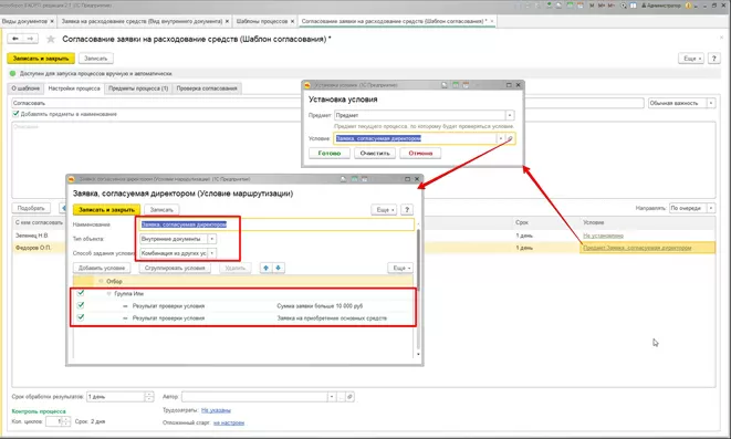 Если согласование заявок по условиям требует подбора согласующих, необходимо воспользоваться функционалом настройки маршрутизации бизнес-процесса.