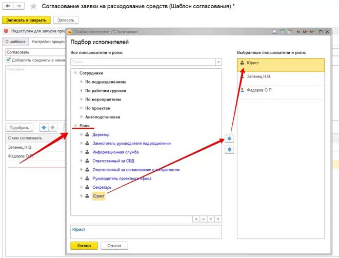Роли исполнителей также настраиваются в разделе «Управления процессами».