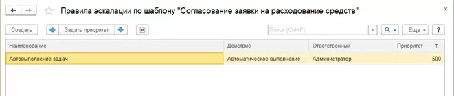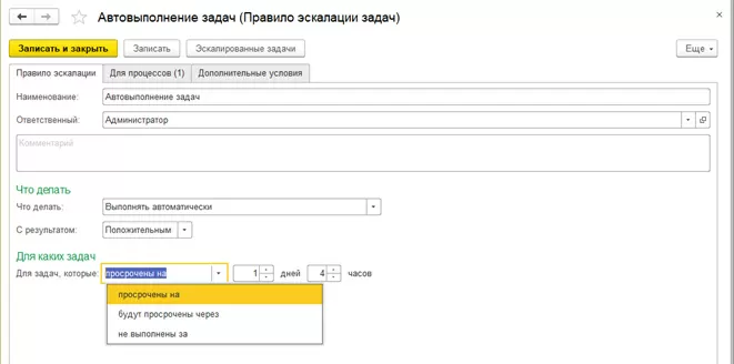 Здесь же можно настроить механизм эскалации задач, позволяющий оптимизировать бизнес процесс и минимизировать человеческий фактор.