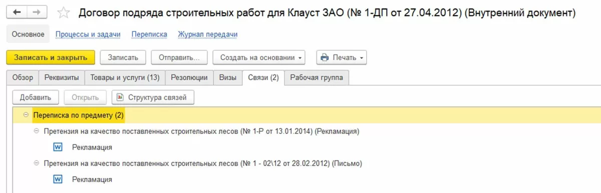 - В первом случае, создавая из документа-источника ссылку на «приемник», система автоматом пропишет связь с предустановленными настройками в обратном порядке: из «приемника» на «источник». Важно отметить, что при удалении любого из этих документов автоматом будут стерты и все имеющиеся связи между ними;