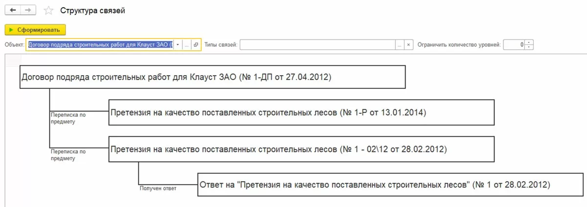 Более того, прямо из документа можно увидеть всю структуру связей документов в одноименном отчете «Структура связей».