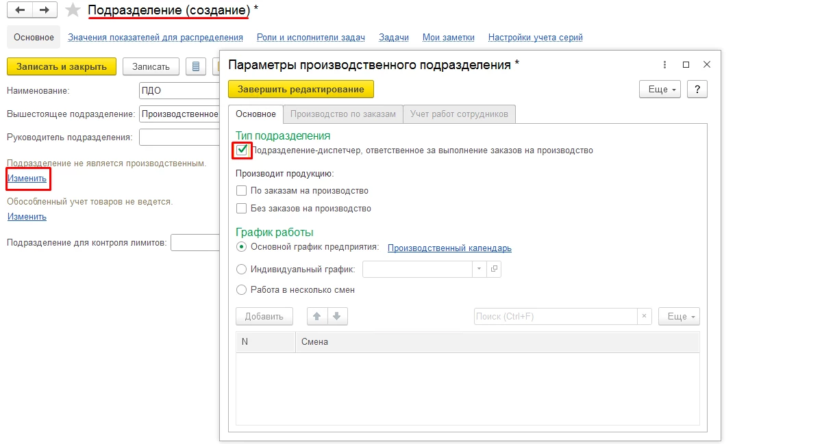 Рассмотрим создание подразделения для диспетчирования графика производства и подразделение для диспетчирования самих производственных процессов.