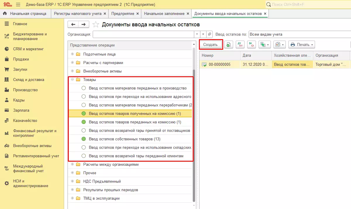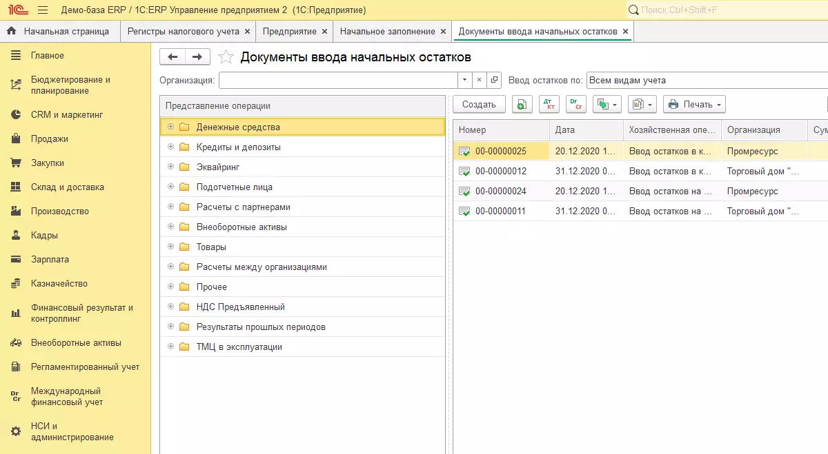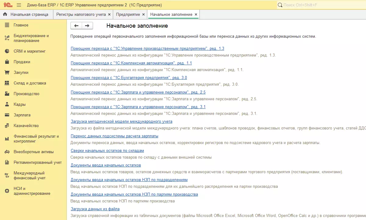 Таким образом, при помощи подраздела Начальное заполнение учетная система 1С ERP подготавливается к запуску.