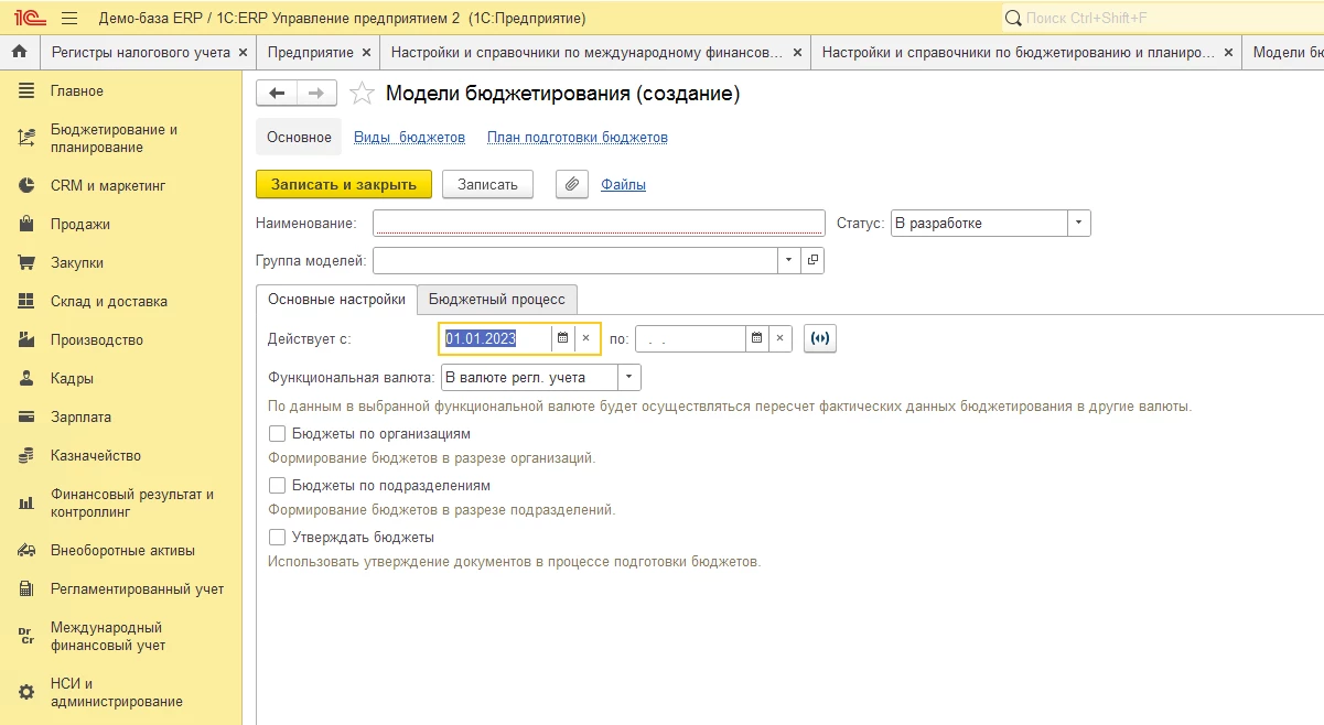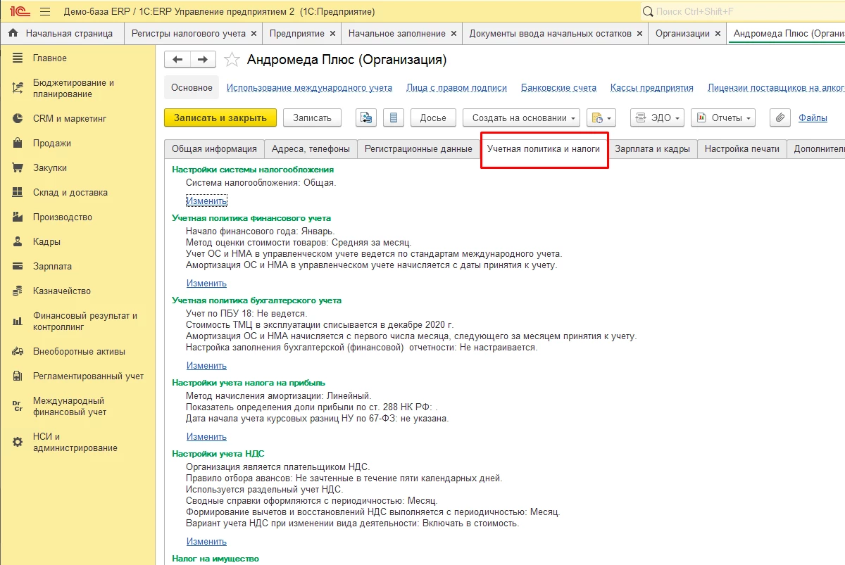 Настройка учетной политики в 1С ERP. Регламентированный учет