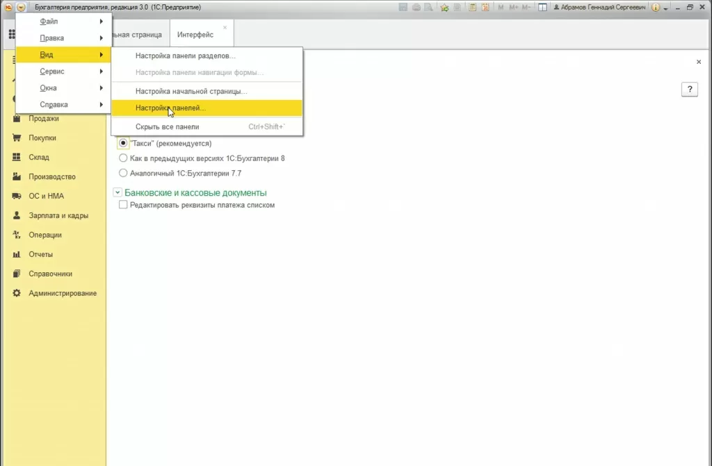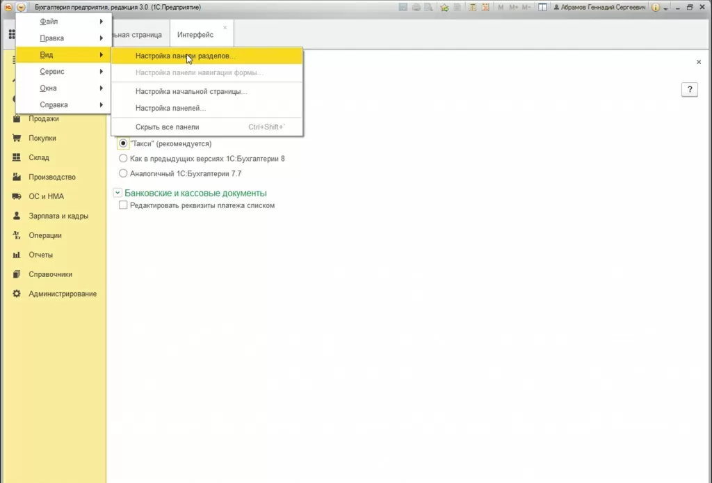 Поскольку этот вид интерфейса был первым, именно он остается самым популярным. Изменить его структуру можно, зайдя в «Администрирование-Настройки программы» - пункт «Интерфейс».