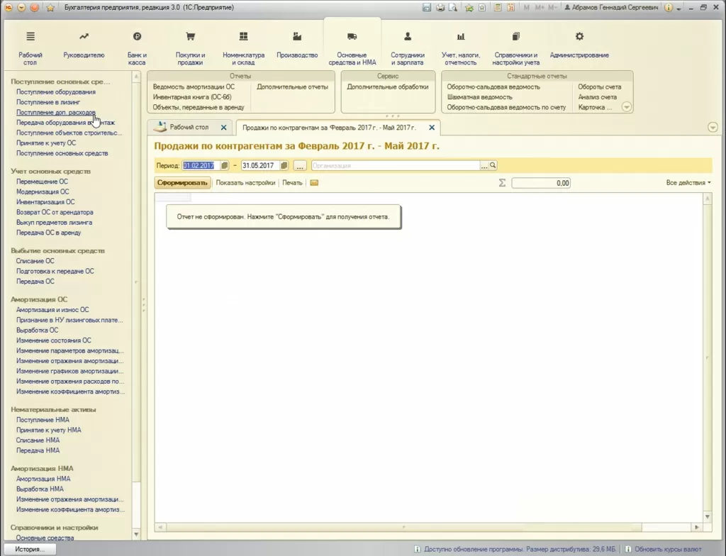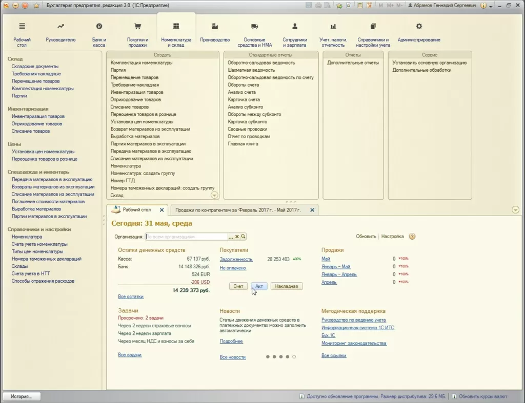 Настройка панели действий позволяет открыть дополнительные окна под основным меню – стандартные отчеты, информация, обращение в техподдержку (кони по сути дублируют вертикальную панель).