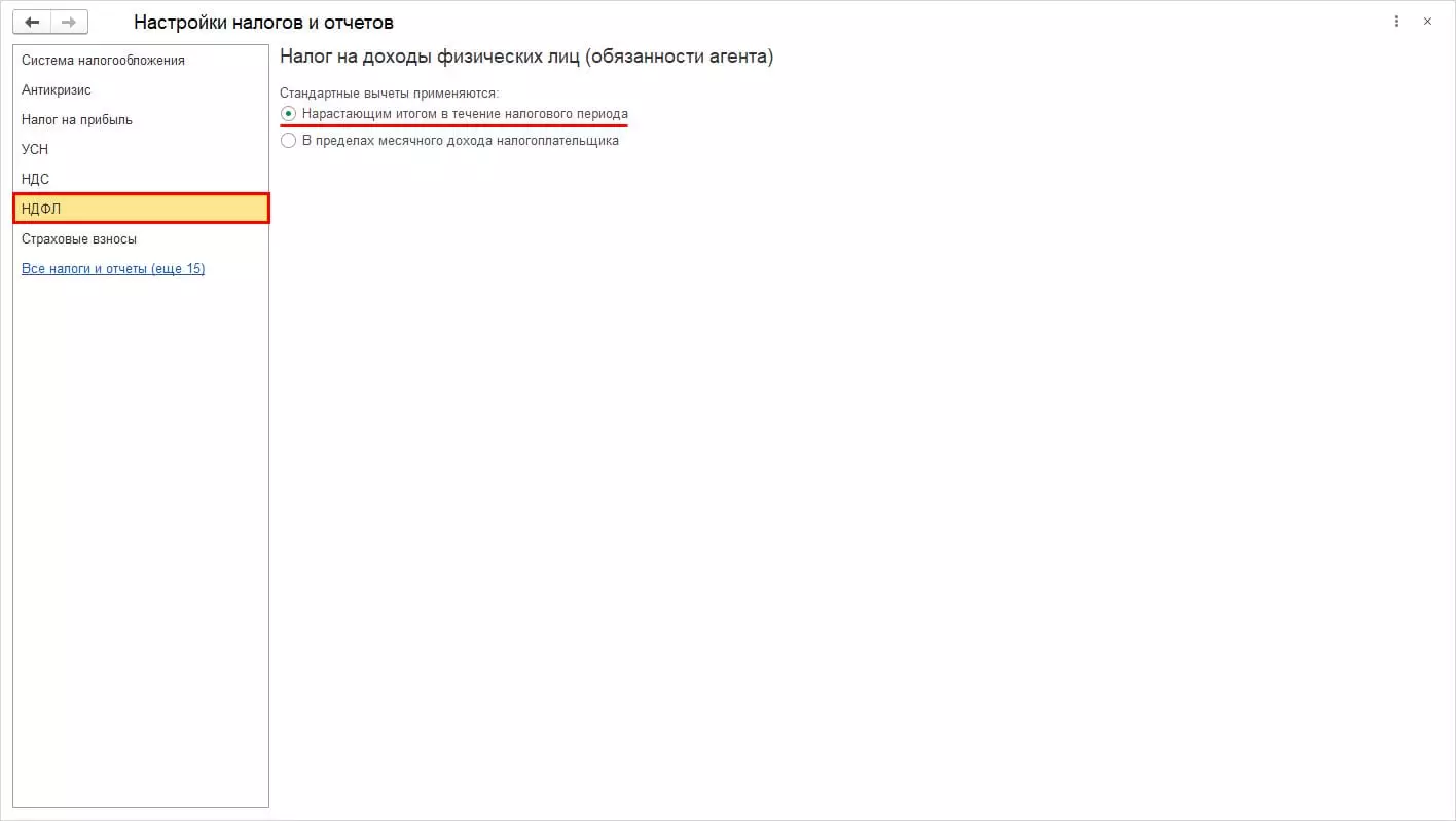 Здесь в разделе «НДФЛ» устанавливается порядок применения вычетов сотрудника: