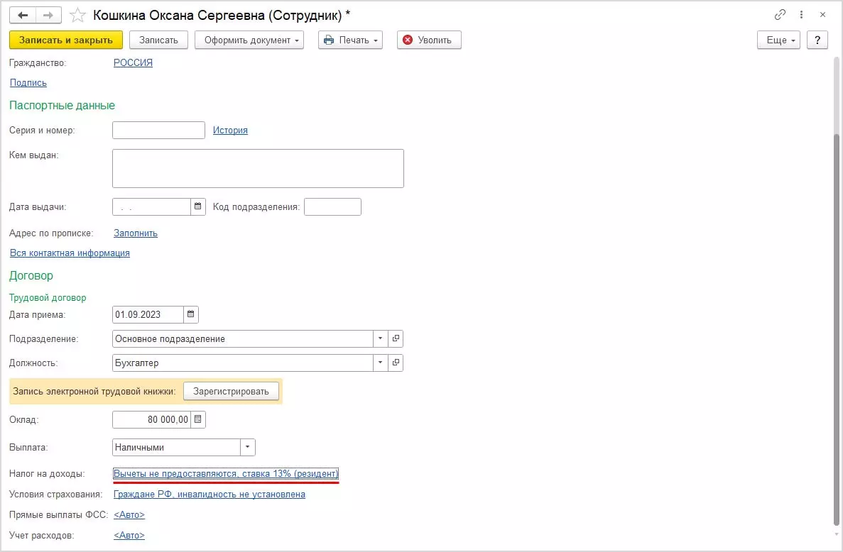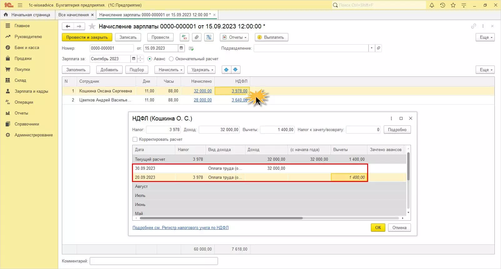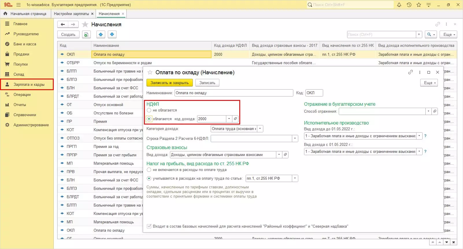 Начисление зарплаты и НДФЛ в 1С:Бухгалтерия