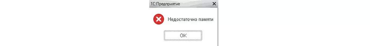 Причины этой ошибки кроются в том, что в операционных системах семейства Microsoft выделяется определенный объем памяти на каждое приложение 1С. Эти значения заявлены разработчиком, компанией 1С. Для 32-разрядных систем это значение установлено в 2 Гб, для 64 – 4 Гб. Когда ПО превышает этот показатель, на мониторе возникает окно с ошибкой.